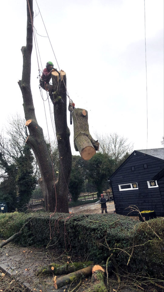 Superb effort from our tree surgeons who safely dismantled this Ash tree for Hatfield Broadoak Parish Council.